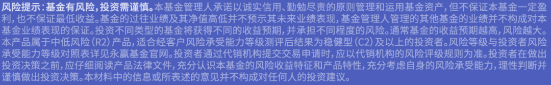 风险领导:基金有风险,投资需严慎。基金贬责东谈主承诺以老诚信用、辛谨守法的原则贬责和诈欺基金资产,但不保证基金一定盈利,也不保证最低收益。基金的过往事迹十分净值上下并不预示其异日事迹推崇,基金贬责东谈主贬责的其他基金的事迹并不组成基金事迹推崇的保证。基金销售机构提醒您基金投资的“买者自诩”原则,在作念出投资有狡计后,基金运营情景与基金净值变化引致的投资风险,由您自行背负。基金贬责东谈主、基金托管东谈主、基金销售机构及干系机构不合基金投资收益作念出任何承诺或保证。请厚爱阅读基金公约、基金招募清楚书和基金居品贵寓节录等居品法律文献。投资者需连合自身风险承受技艺严慎投资。